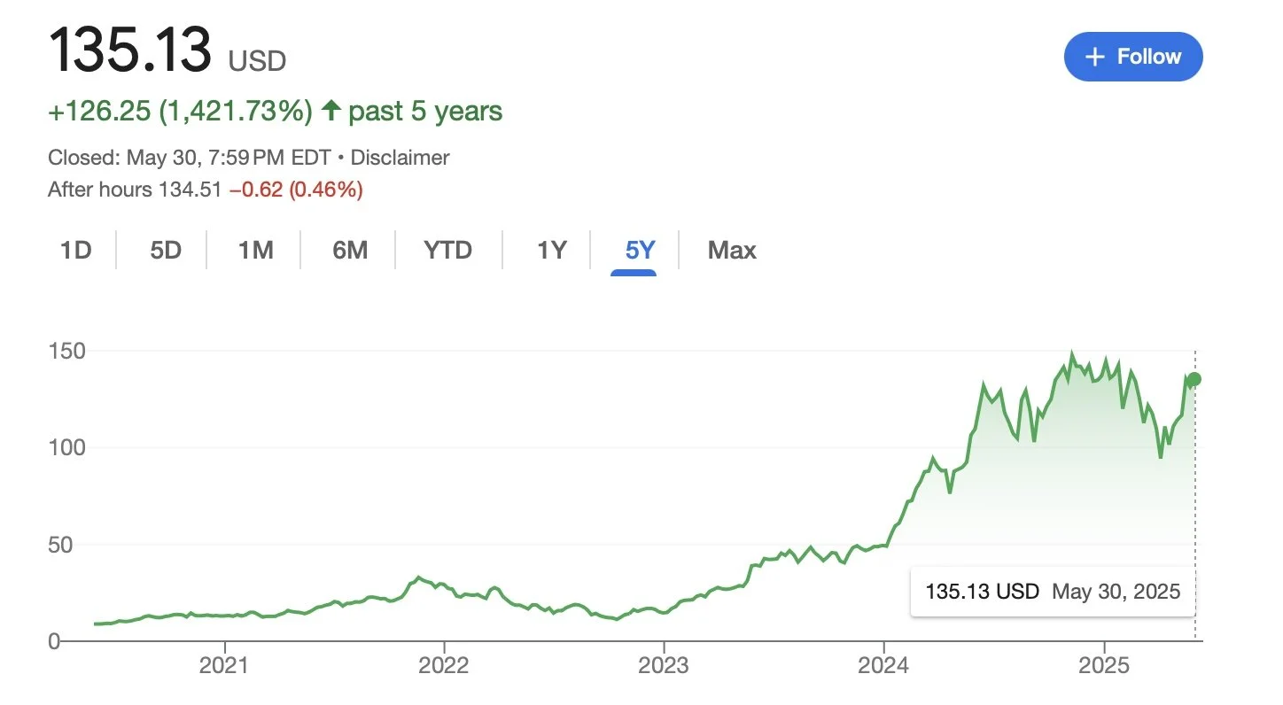 The NVIDIA stock price has stagnated YTD, it has grown 1,421% from $9 to $135 over the past 5 years. Again, not a stock tip but to show immense recent growth in AI-centric companies.